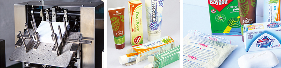 適用于軟膏類物品(牙膏、藥膏)及軟包裝類物品的自動(dòng)裝盒。